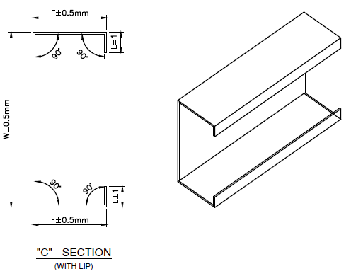 Bow & Camber: 1mm máximo por metro comprimento de purlin em ambos os lados